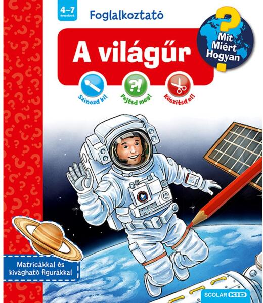 A Ravensburger Mit? Miért? Hogyan? Foglalkoztató sorozatának e kötete a bolygók, a csillagok és az űrkutatás világába vezeti az apróságokat. Mi az a világűr, miért vannak nappalok és éjszakák, kié a Hold, hogyan lesz valakiből űrhajós? A foglakoztató játékos feladatait megoldva a gyerekek e kérdésekre is választ kaphatnak.