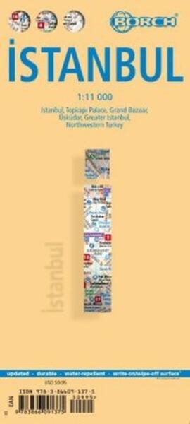 Einzelkarten: Istanbul 1:11 000, Topkapi Palace 1:4 000, Grand Bazaar 1:3 000, Üsküdar 1:13 000, Greater Istanbul 1:150 000, Northwestern Turkey 1:2 000 000, Public Transport Istanbul, Turkey administrative§Format: 494 mm x 660 mm§Unsere folienbeschichtete, gefaltete Karte von Istanbul in der 2. Auflage beinhaltet: Istanbul 1:11 000, Topkapi Palace 1:4 000, Grand Bazaar 1:3 000, Üsküdar 1:13 000, Großraum Istanbul 1:150 000, nordwestliche Türkei 1:2 000 000, das öffentliche Verkehrsnetz Istanbuls, eine administrative Übersichtskarte der Türkei mit den Zeitzonen, Top 30 Sehenswürdigkeiten. Borch Maps sind leicht zu falten, langlebig und wasserabweisend mit einer abwischbaren Oberfläche. Borch Maps zeigen Hotels, Museen, Monumente, Märkte, Linien des öffentlichen Verkehrsnetzes, Sehenswürdigkeiten, nützliche Statistiken, Umrechnungstabellen für Temperaturen, Maße und Gewichte, Klimadiagramme mit Luft- und Wassertemperaturen, Sonnenscheindauer und Niederschlag, Übersichtskarten, Zeitzonen und vieles mehr...