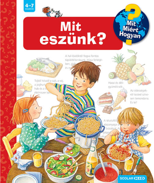 A Mit? Miért? Hogyan? sorozat 31. kötetének segítségével az óvodások és a kisiskolások mindennapi életünk fontos részével, a helyes és egészséges táplálkozással, a különböző élelmiszerek jótékony, illetve egészségkárosító hatásával, valamint előállításuk érdekességeivel ismerkedhetnek meg. „Mi történik szervezetünkben az ennivalóval? Mi az az ételpiramis? Honnan származik a banán? Hogyan nő a rizs és a kukorica? Mi mindent lehet gabonából készíteni? Mit ettek régen az emberek? – a kötetet lapozgatva mindezekre választ kaphatnak a mindenre kíváncsi gyerkőcök. Az ötletes könyv szórakoztatva vezeti be a gyerekeket (és szüleiket is!) az egészséges életmód alapjaiba – mert az egészségre nevelést korán kell kezdeni!A már hazánkban is közkedvelt Ravensburger-játékok közé tartozó képes szakkönyvsorozat kedves illusztrációkkal, a gyerekek életkorának megfelelő információkkal ad választ a rengeteg kérdésre. Minden egyes oldal új témakört jár körül, melyek részletgazdagságában a felnőttek segíthetnek eligazodni, akár egy-egy óvodai vagy kisiskolás foglalkozás keretében. A sorozat nyomdai kivitelezése egyedülállóan magas színvonalú. Fő különlegessége, hogy minden könyv közel 50 titkos ablakot rejt, melyek fedelét felnyitva a gyerekek kielégíthetik kíváncsiságukat. A sorozat kötetei: 1. Az építkezésen 2. A mi óvodánk 3. A tanyán 4. Időjárásunk 5. Közlekedj okosan! 6. Az óra és az idő 7. Az autók 8. A számok felfedezése 9. Fedezd fel a tested! 10. A világűr felfedezése 11. Teherautók, markológépek és traktorok 12. Állatok és kicsinyeik 13. Lovak és pónik 14. Hogyan működik? Technika az otthonunkban 15. A tűzoltók 16. A cirkusz 17. A vonatok 18. Dinoszauruszok 19. A kalózok 20. Honnan jön a kisbaba? 21. A rovarok 22. A lovagvár 23. Fedezd fel az érzékszerveid! 24. A foci 25. Az állatkertben 26. Földünk 27. Háziállatok 28. Veszélyes állatok 29. A gyerekorvosnál 30. Felfedezés és kísérletezés 31. Mit eszünk? 32. A balett 33. Gépek a gazdaságban 34. Mi történik a kórházban? 35. Repülővel utazunk 36. Karácsony 37. Bálnák és delfinek 38. A vikingek 39. Indiánok 40. Fedezd fel az erdőt! 41. Fedezd fel a hajókat! 42. Hercegnők 43. A rómaiak 44. Fedezd fel az óriásjárműveket! 45. Fedezd fel a hegyeket! 46. Vallások a világban 47. A természet csodái 48. Rendőrség 49. Iskolás leszek 50. A kerékpár 51. Kalandorok és felfedezők 52. Akcióban az életmentők 53. Tengeri állatok 54. Óvjuk a környezetet! 55. Versenyjárművek 56. Járművek az építkezésen 57. Robotok 58. Állatok munkában 59. A lovaglás 60. Fedezd fel az autókat! 61. Mindent a szemétről + Első lexikonom + Első nagy állatatlaszom + Fedezd fel a Bibliát! + Óriás felfedezőkönyv + Nagy, nagyobb, legnagyobb